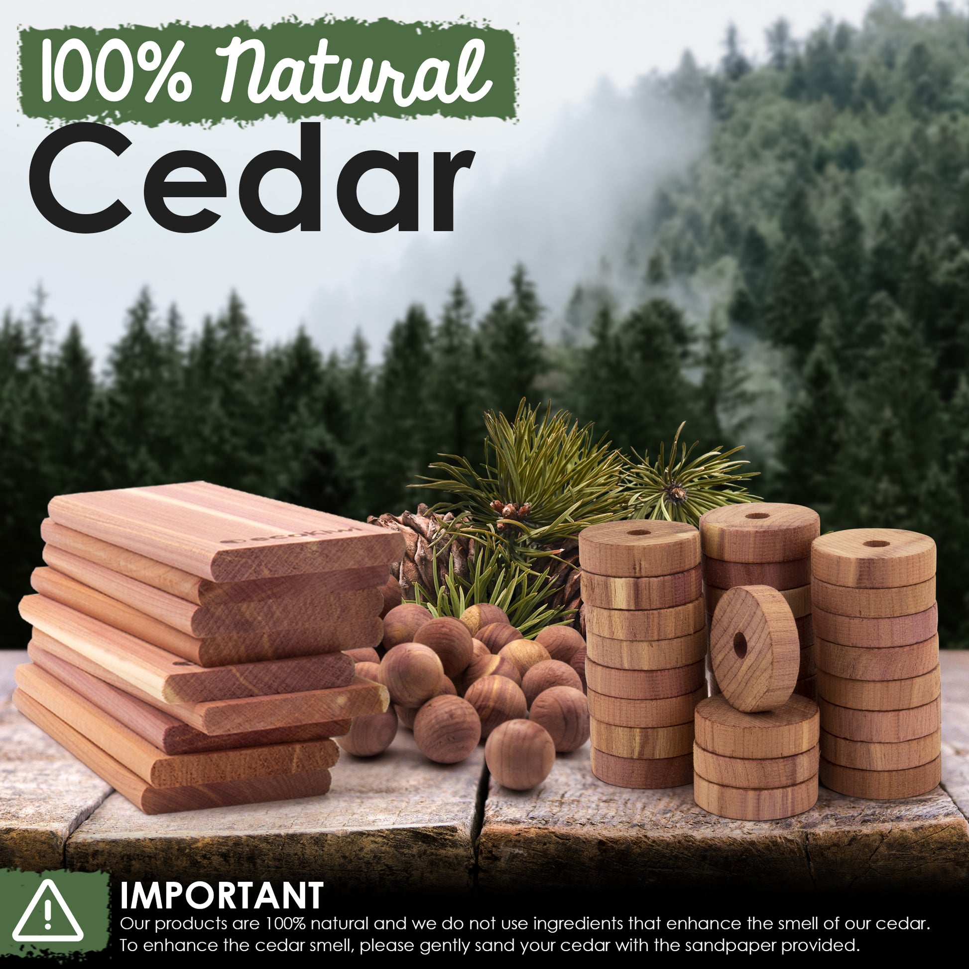 • A REFRESHING & SENSATIONAL SCENT - Cedar has a light, reinvigorating and delicate fragrance. Our cedar wood for closets are specially selected at the source to ensure it's packed with essential oils. Whether in your wardrobe, drawer liners or cupboard, our cedar for closets will illuminate the atmosphere with a cosseting cloud of cedar to ensure holes in your clothes, odors and excess moisture in your wardrobe are distant memories.