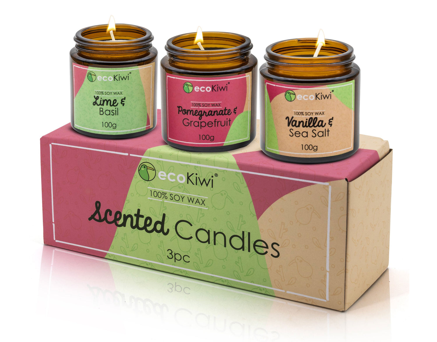 Our unique selection of Vanilla & Sea Salt, Pomegranate & Grapefruit, and Lime & Basil scented candles will bless the air around you with an aura of pleasure. We use 100% natural soy wax with no added paraffins and ZERO Plastic. A gorgeous gift for anyone, anytime! 🤍